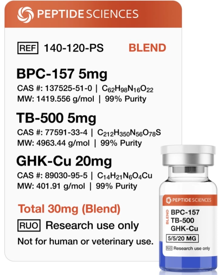 Want shiny skin? Try the ‘Glow Blend’. A combination of BPC-157, TB-500, and GhK-CU. This combination promises anti-inflammatory, tissue repair, and increased Collagen.